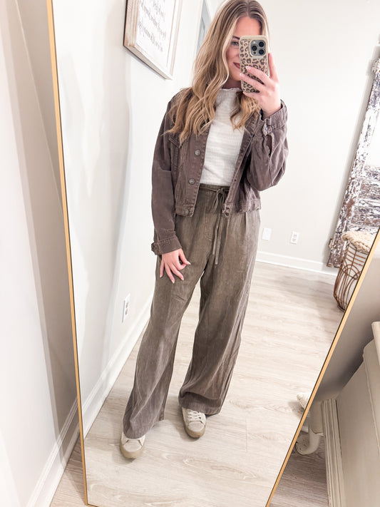 Charcoal High Waist Drawstring Wide Leg Pants
