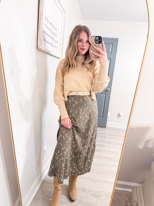 Khaki Knit Cropped Sweater
