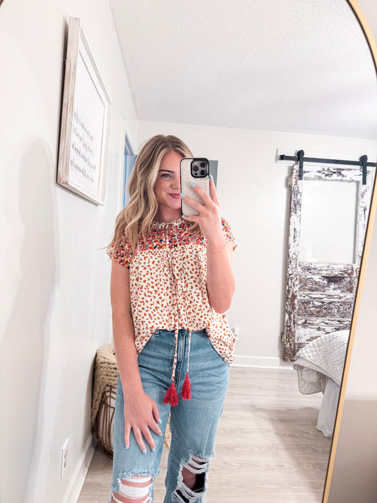 Red Embroidery Blouse